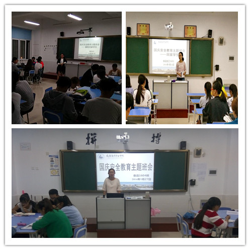 国庆节将至,为进一步加强学生的安全教育和管理,增强学生的安全防范意识,确保放假期间学生的人身和财产安全,食品工程系各班级于近期召开了国庆安全教育主题班会。