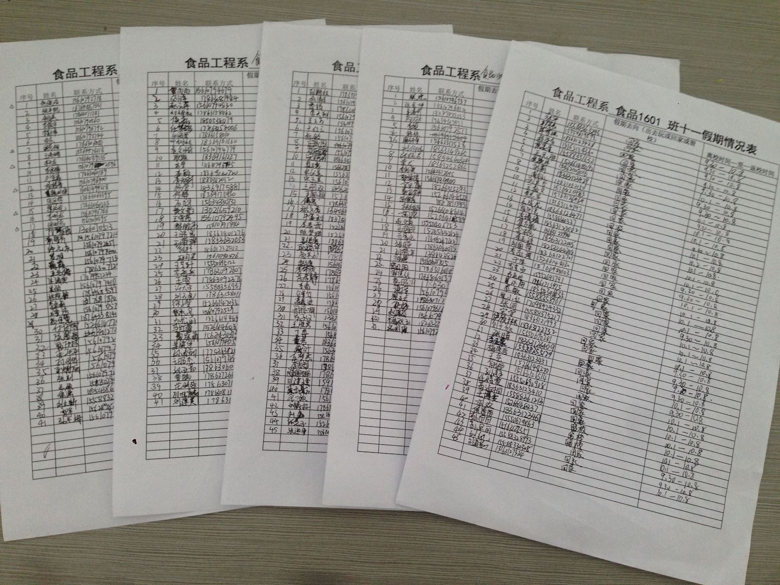 班会包括假期去向、假期安全注意事项和学生常规管理三个方面内容。各班主任首先要求学生认真、据实填写了《食品工程系十一假期去向统计表》和针对留校学生的《十一留校学生名单》,准确掌握学生假期去向。随后,各班主任通过真实案例提醒同学们一定要提高防传销、防诈骗、防火防盗等方面的安全防范意识,要求同学们“拒绝黑车、珍爱生命”,不要乘坐黑车等其他非法营运车辆出行;提醒利用假期打工的同学要注意人身安全,要和用工单位签订书面用工协议,要警惕非法招工中介利用勤工助学方式实施欺骗;提醒留校的同学自觉遵守公寓管理规定,加强防范意识,更需要保护好自己,保护寝室财产安全,不断提高防火、防盗、防人身伤害意识。最后,各班主任要求同学们严格做到按照学校规定假期时间出行,严禁假期提前离校和晚归等行为,假期前后按时上课、上晚自习和早操。