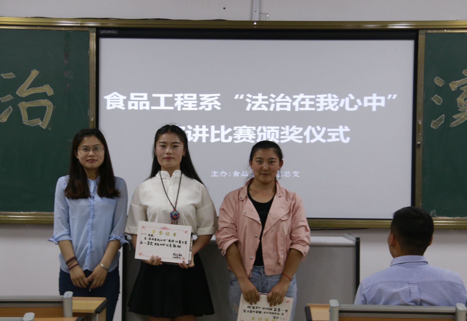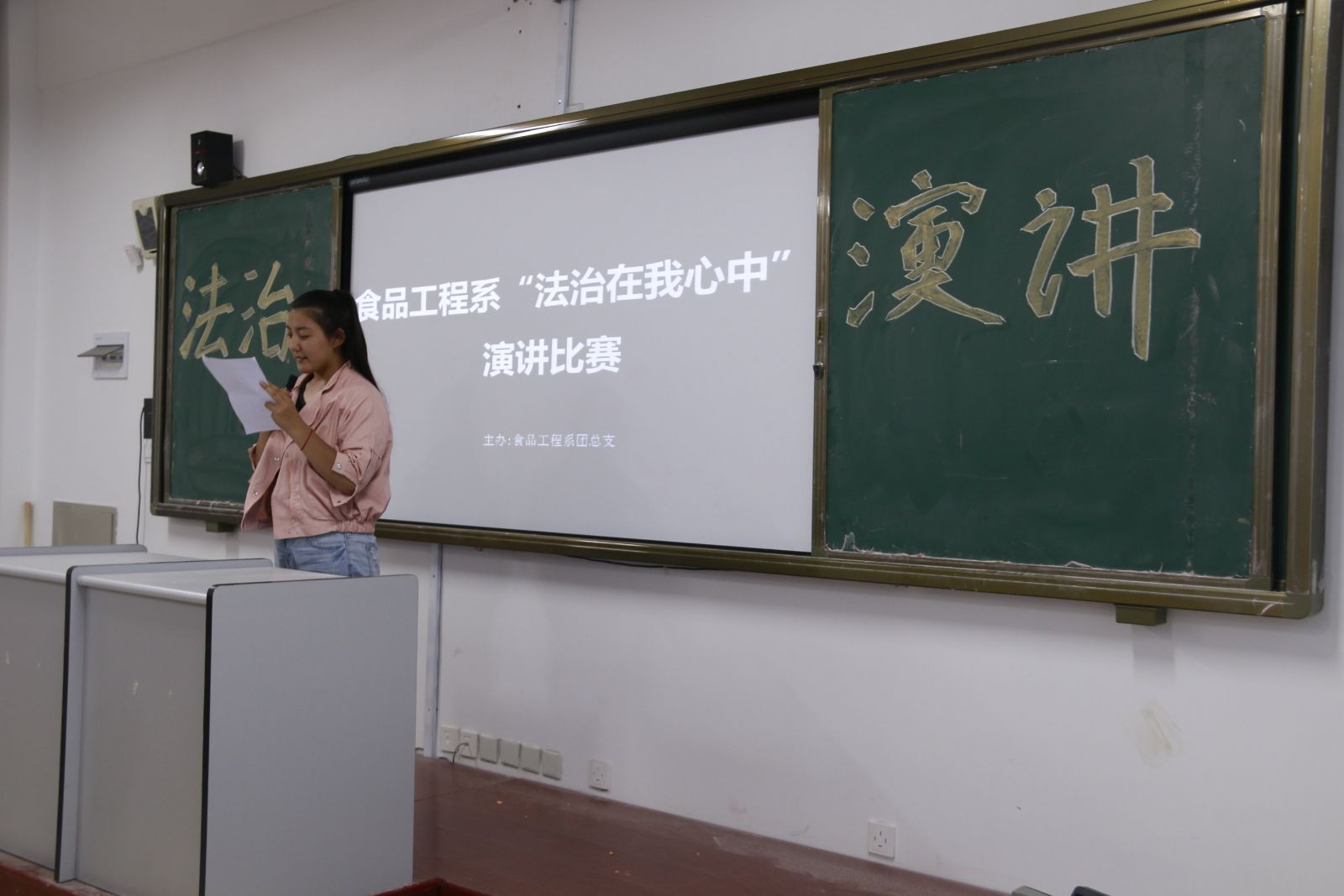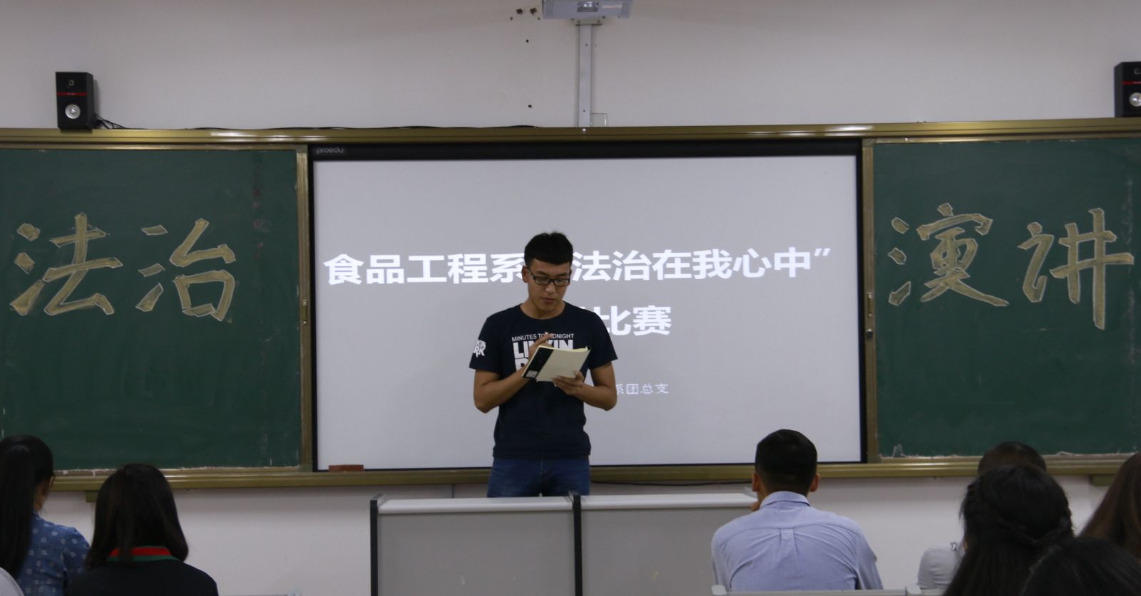 弘扬遵纪守法精神,展现当代青年风采。6月7日晚,作为食品工程系“2016年校园宣传月”系列活动之一的“法制在我心中”法制宣传演讲比赛在教学楼B1-409成功举行。