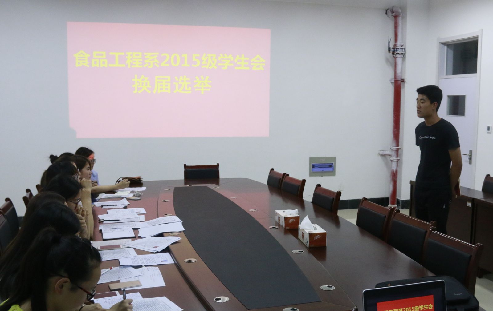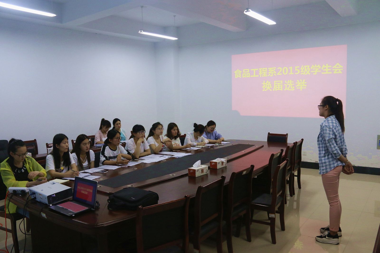 2016年6月21日晚,食品工程系于B1-210举行了第二届学生会换届选举大会。辅导员郑婷,第一届学生会主席团及各部长担任本次换届选举的评委。