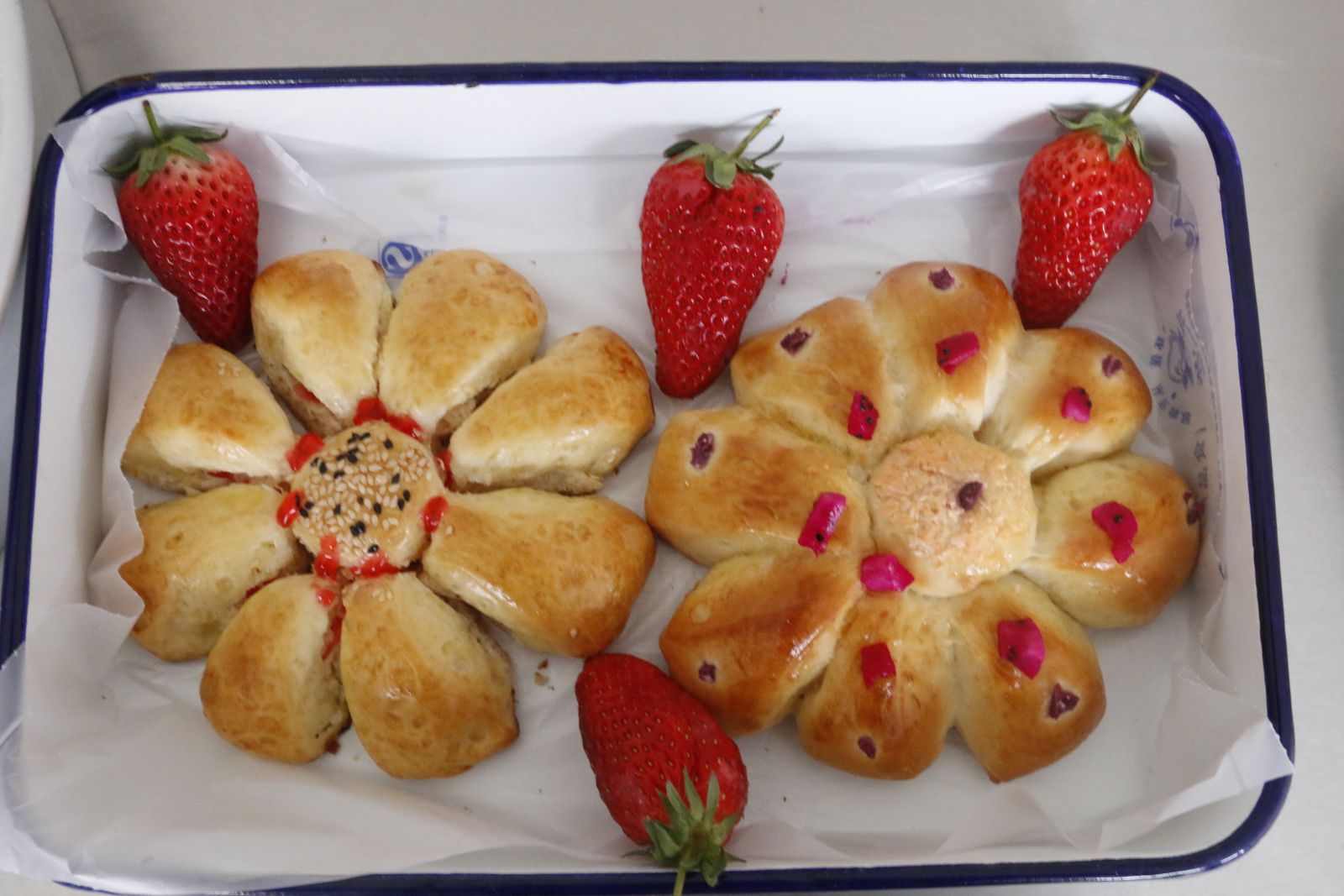本次比赛的设计理念是“绿色、创新、梦想”,所有选材均采用天然食材,无任何添加剂和染色剂,追求健康与营养;造型上在注重美感的同时,创新性的融入了很多中国元素,也将春的生机勃勃与美好祝愿体现出来,寓意祖国欣欣向荣、中国梦的伟大愿望。经过一周的准备,所有同学都完成了自己的作品,一个个精致、富有创意的面包呈现在大家的面前,“红红火火”“八点了”“记忆的年轮”“表情帝”……花样迭出的食品名称、可爱有趣的造型、五彩纷呈的创意……每一款面包都凝聚着学生们的巧思灵慧。最终,食品1403班郭延秀同学的《铿锵玫瑰》以最独具匠心的创意、最细腻的口感、最特别的外形设计征得了评委们的一致好评,最终荣获本次烘焙大赛的冠军。