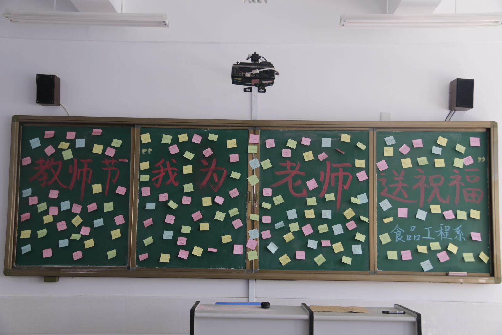金秋九月,果香氤氲,从顽皮稚童到青涩少年,转而风华青年,我们历经了二十个丹桂飘香的秋天。一路走过,离不开老师对我们的帮助和支持;每一位老师循循善诱的教导和无私的关怀,都对我们的成长有着非凡的意义。在第三十一个教师节到来之际,为大力营造尊师重教的良好社会氛围,构建和谐师生关系,切实转变工作作风,勤俭节约,反对铺张浪费。食品工程系于9月6日起开辟了“祝福墙”,让同学们用笔表达心中对老师的祝福和感激,为同学们搭建了一座感恩之桥。