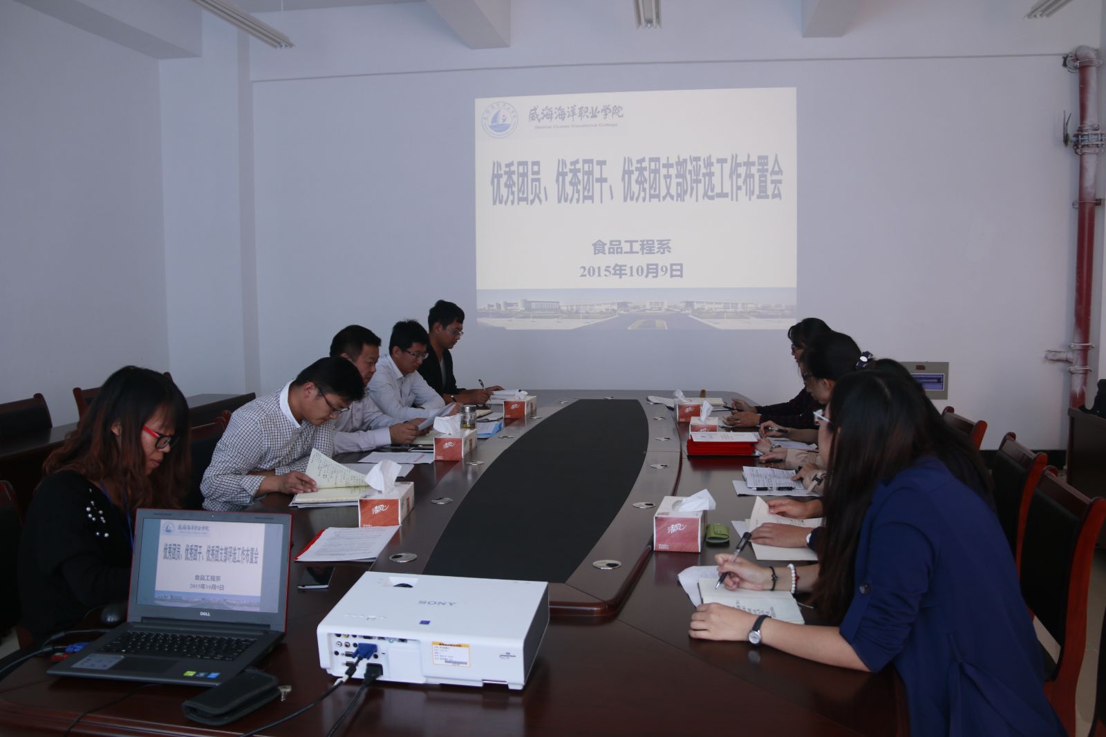 会议传达学习了《威海海洋职业学院关于优秀团员、优秀团干部、优秀团支部的评选通知》和《威海海洋职业学院关于优秀社团、优秀社团干部的评选通知》两个文件。在此基础上,系负责人就落实好两个文件提出了五点要求:一是要充分认识评优工作的重要意义;二是要认真学习,广泛宣传;三是要严格按规定要求和程序操作,务必做到公平、公正、公开。四是要抓住关键环节,突出重点,评优工作要注重先进性、代表性,宁缺毋滥;五是要以评优工作为契机,对全体同学进行一次深入的学习教育,继而推进学风建设。
