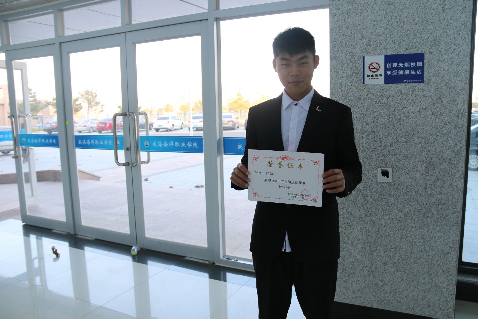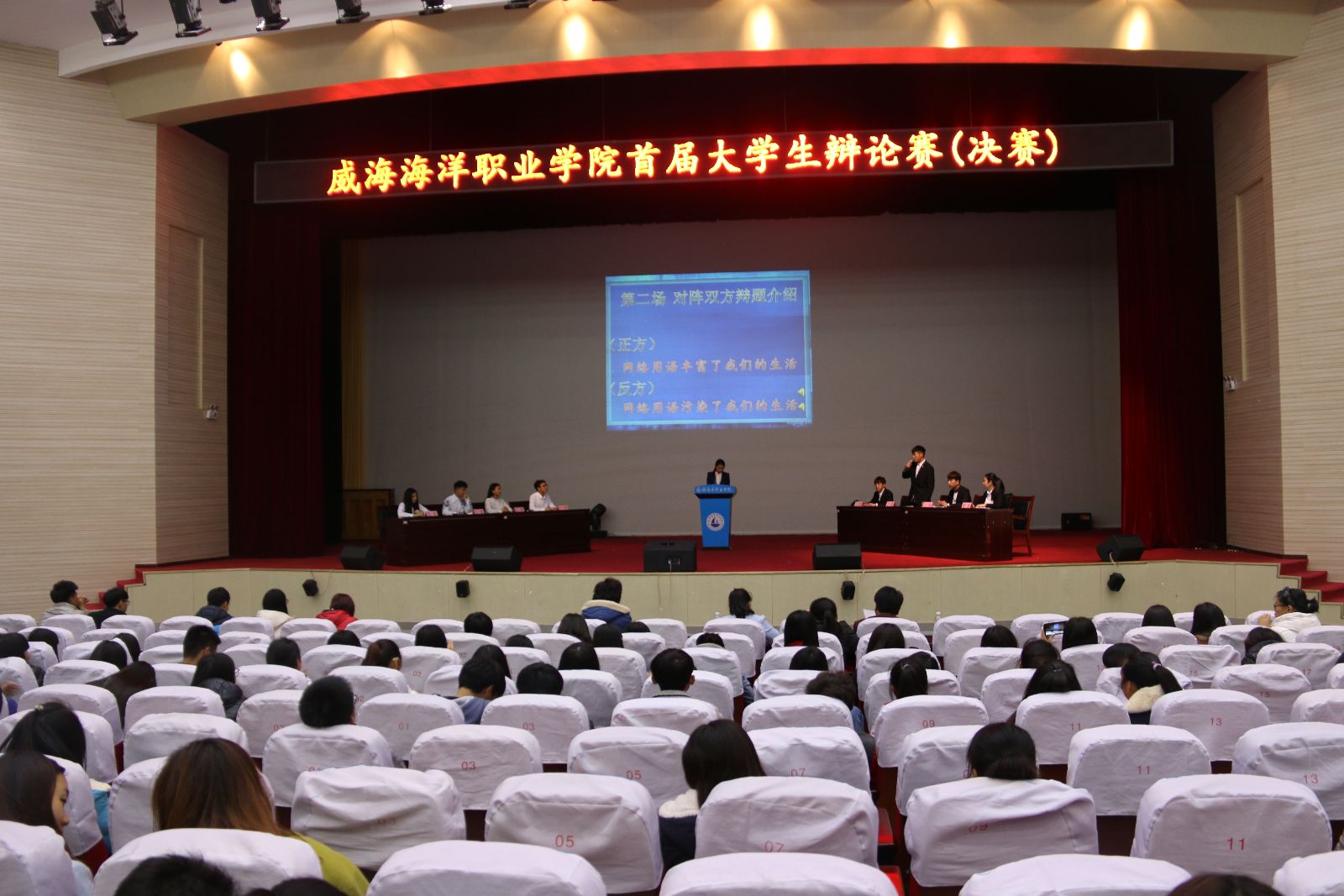 2015年11月18日下午,由共青团威海海洋职业学院委员会主办的威海海洋职业学院首届大学生辩论赛决赛于院学术报告厅精彩落幕。经过精彩纷呈的层层辩论,我系最终喜获第二名,韩栋获“最佳辩手”称号。