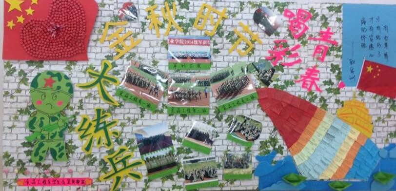 此次板报主要以军训练兵、喝彩青春为主题,以独特的立体形式展现了同学们军训时的英姿飒爽,汇入了各班同学对军训的感想及对大学新生活的向往。