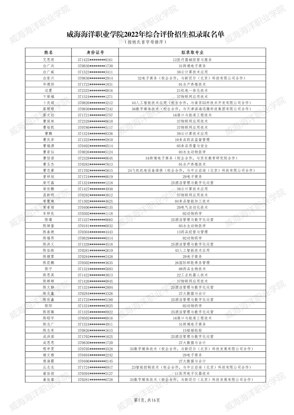 经学院招生工作领导小组研究,现将我院2022年综合评价招生和单独招生(退役军人类)拟录取考生名单予以公示。公示时间:2022年4月3日至4月5日。如考生对公示结果有异议,可致电招生就业处 0631-7697599,纪检监察室 0631-7697313,逾期不予受理。